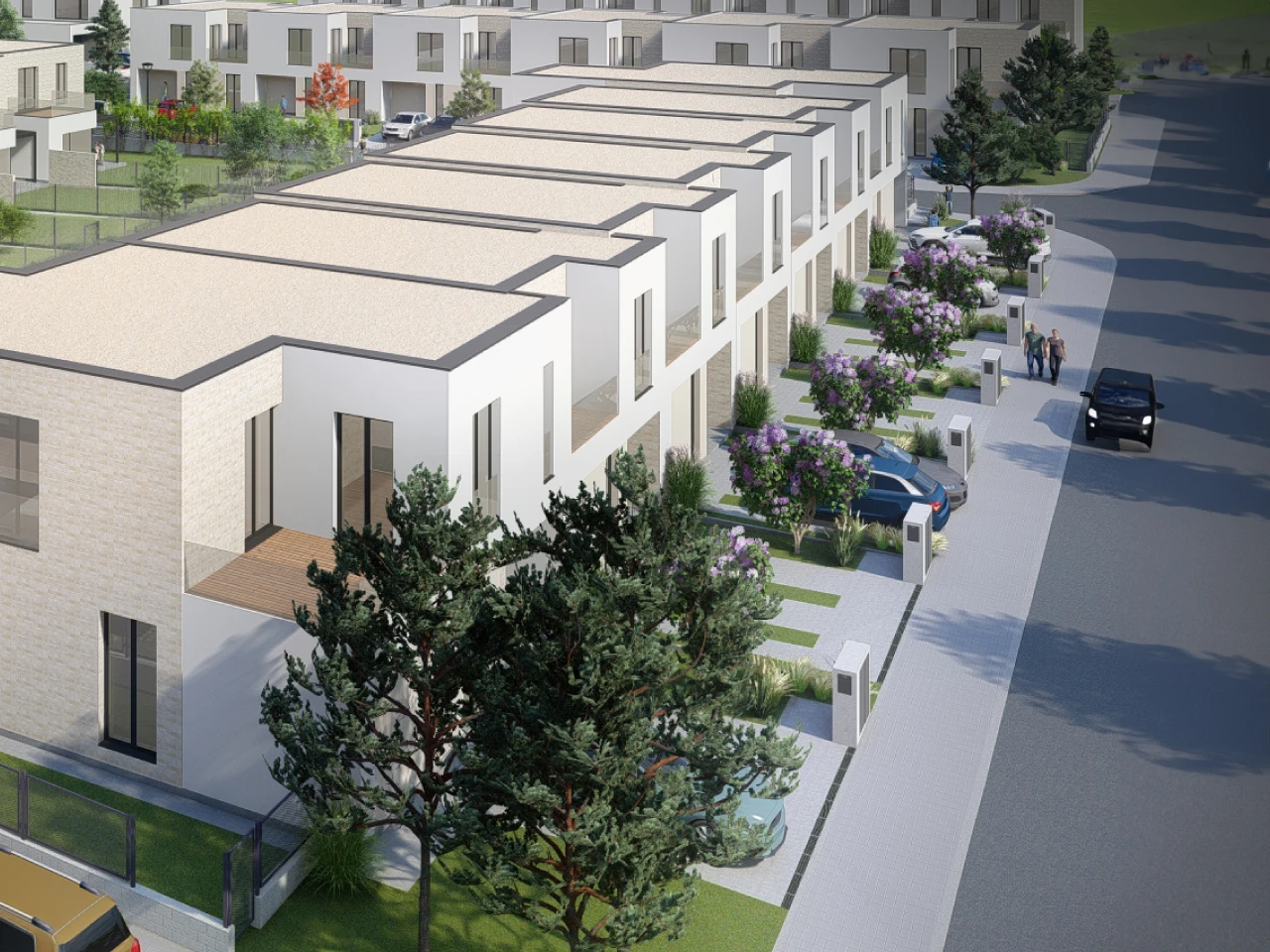 Nabízíme 28 řadových domů rozdělených do 5 zástaveb. K domům vždy náleží zahrada a 2 parkovací místa. Pozemky jsou vždy koncipovány tak, aby bylo možné se do zahrady dostat přes branku a nebylo tak nutné procházet interiérem domu. Vysoké nároky na provedení a kvalita dodávaných standardů zároveň naplňují úroveň stylového městského bydlení.